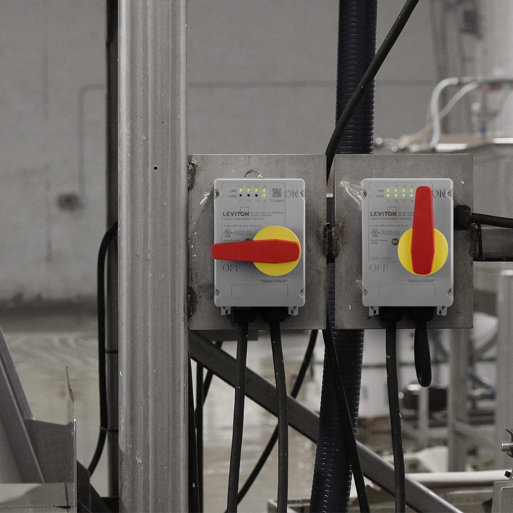 LEV Series Mechanical Interlocks incorporate a safety disconnect switch and an IEC receptacle in a non-metallic watertight enclosure. The interlock mechanism prevents the making and breaking of power under load. Devices with Inform Technology feature local and remote monitoring. By integrating IIoT technology, users can identify disturbances that can impact machine performance and minimize unplanned downtime.