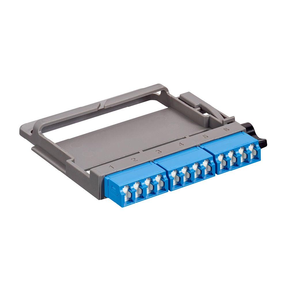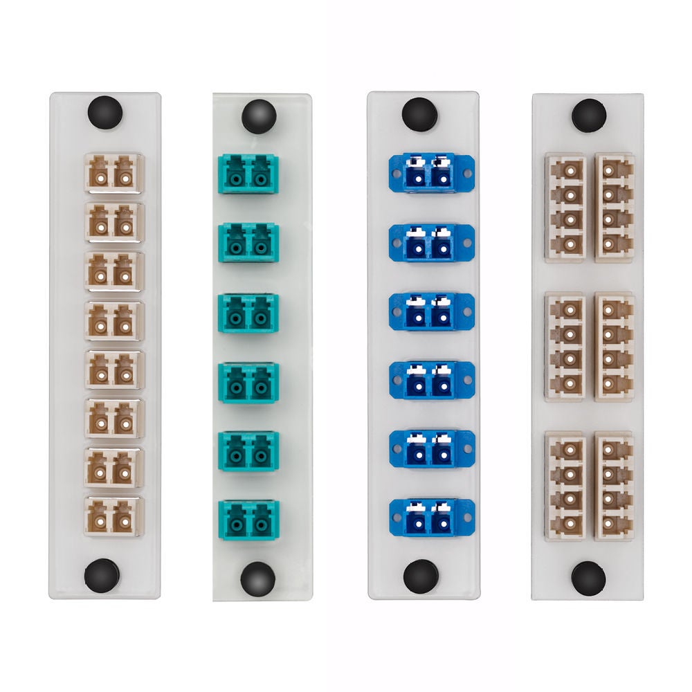 - Optional IP-5x-rated, internal shutters on LC adapters eliminate the need for dust plugs to reduce waste, speed deployment, and ensure safer installation
