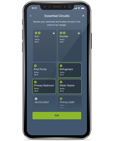 Plutôt que d’installer un panneau de distribution essentiel secondaire pour alimenter les circuits critiques à partir d’un générateur, l’application My Leviton offre une interface où les utilisateurs peuvent changer leurs circuits essentiels et non essentiels à tout moment, sans qu’il soit nécessaire de refaire le câblage. Le s’intègre aux interrupteurs de transfert automatique par l’interface de contact et délestera automatiquement les charges non essentielles en cas de panne de courant du réseau.